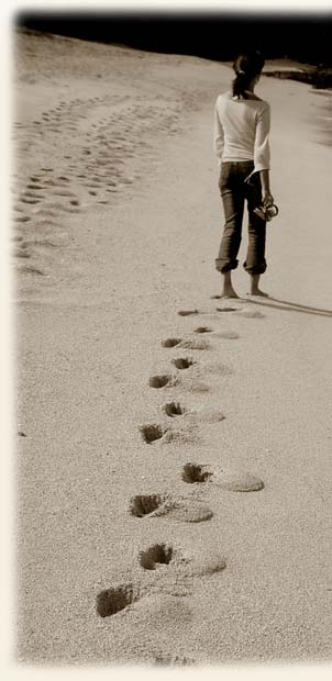 Une nuit, j’ai eu un songe. J’ai rêvé que je marchais le long d’une plage, en compagnie du Seigneur.Dans le ciel apparaissaient, les unes après les autres, toutes les scènes de ma vie. J’ai regardé en arrière et j’ai vu qu’à chaque scène de ma vie, il y avait deux paires de traces sur le sable: L’une était la mienne, l’autre était celle du Seigneur. Ainsi nous continuions à marcher, jusqu’à ce que tous les jours de ma vie aient défilé devant moi. Alors je me suis arrêté et j’ai regardé en arrière. J’ai remarqué qu’en certains endroits, il n’y avait qu’une seule paire d’empreintes, et cela correspondait exactement avec les jours les plus difficiles de ma vie, les jours de plus grande angoisse, de plus grande peur et aussi de plus grande douleur.